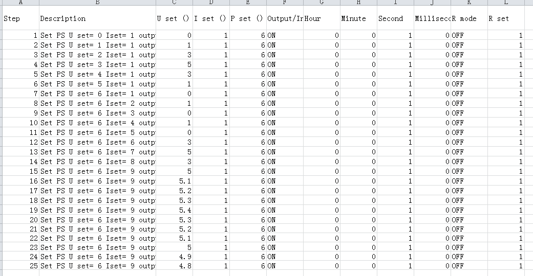 在排序記錄窗口內,先點擊“編輯排序文件”,按照文件格式,修改電壓,電流,功率值以及時間。