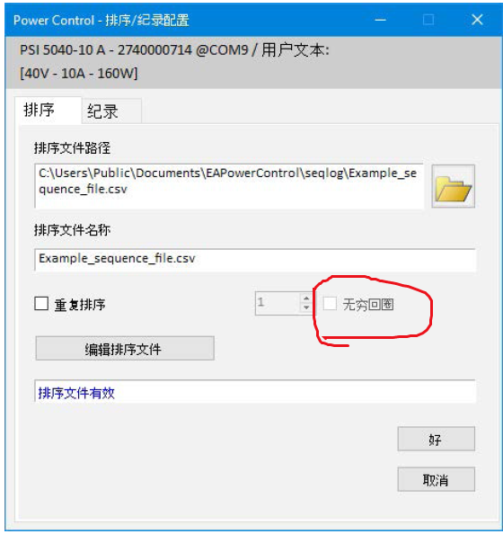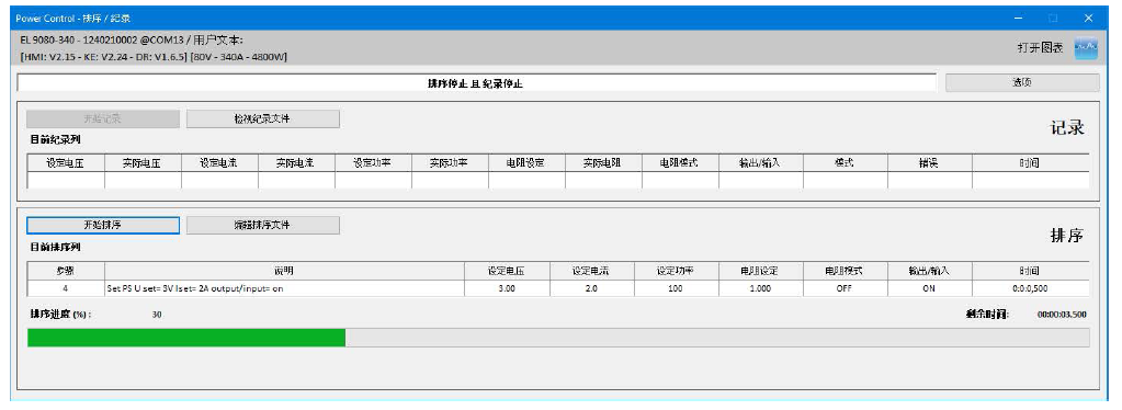 1、安裝好EA power control軟件,確保能正確連接電源,然后點擊“排序記錄”按鈕。