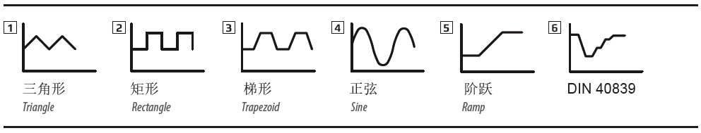 所有型號都配有可生成典型函數(shù)的函數(shù)發(fā)生器,如下圖所示,可以應(yīng)用到輸入電壓或電流上。函數(shù)發(fā)生器可由前板的旋鈕跟按鈕完全配置和控制,或者經(jīng)數(shù)字接口遠(yuǎn)程控制。